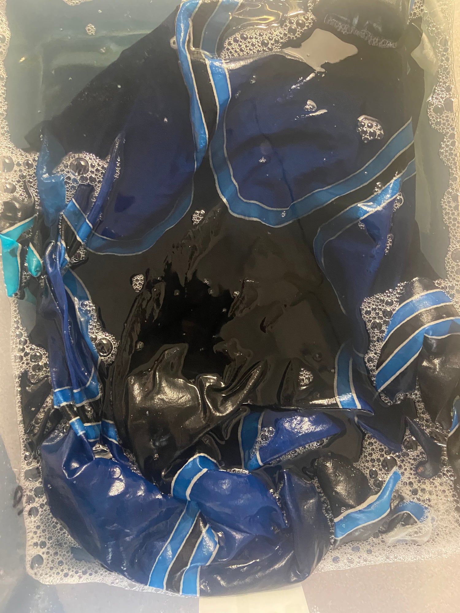 The finished piece is wrapped and steamed for several hours. This step fixes the pigments deep into the fibers. It is then washed in a gentle detergent to remove any excess dye, leaving a clean and permanent surface.